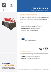 The TKBIG model is intended for high-risk environments. Hydraulic, automatic, and equipped with an external control station for easier maintenance, it features a wider structure and 450 mm spikes. It withstands impacts from heavy vehicles up to 7.5 tons at speeds up to 50 km/h, ensuring continuous protection and long-term reliability. Protective panels positioned beneath the spikes ensure maximum pedestrian safety.