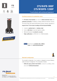 The 275/M30FB 1200F bollard is one of the most resilient fixed solutions in the Pilomat range. Thanks to its reinforced structure, which reaches impact resistance levels up to 1,200,000 joules, this bollard is the ideal choice for securing sensitive areas. With a height of 1200 mm, it stands out as a highly visible and imposing element, ensuring a strong deterrent effect. This model is also available with a welded flat-head top.