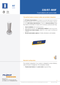 The 220/RT-800F fixed bollard combines an 800 mm height with a 220 mm diameter to ensure a solid structure with high impact resistance. Designed for bridges, viaducts, and areas with reduced slab thickness, it provides effective protection even where deep foundation work is not feasible.