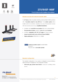 The high-security fixed bollard 275/K4SF 900F is certified according to PAS68 (V/7500 at 48 km/h), IWA 14-1, and ASTM F2656 standards. Thanks to its compact 200 mm foundation and modular structure, this model ensures fast installation and adaptability to any configuration, with the option for sloped or angled placement.